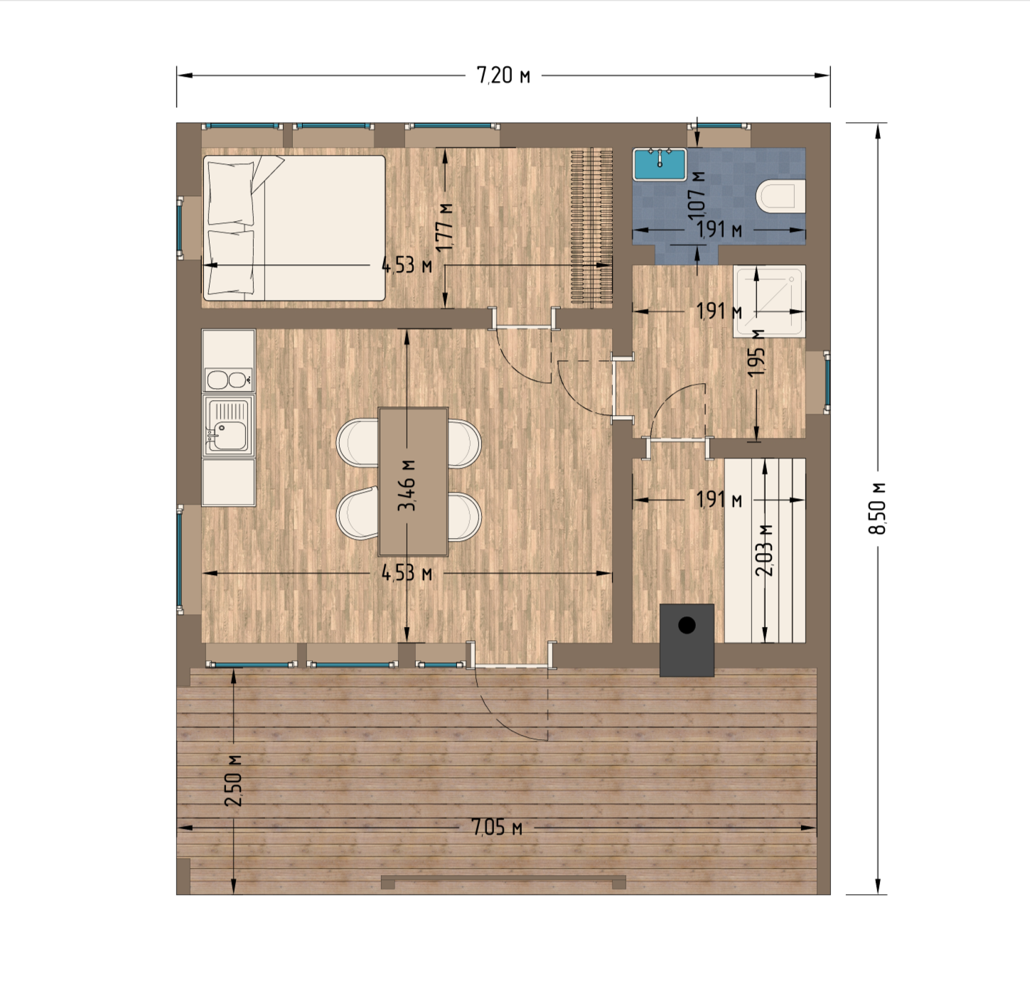 - Размер модуля 6х3 + веранда 6х3